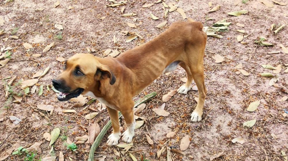 Os policiais civis encontraram o animal preso em um quintal, magro e sem indício de que estava sendo alimentado