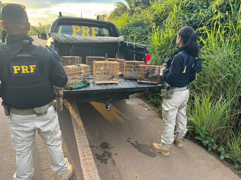 Seis caminhões foram apreendidos por transportar madeira sem os documentos que comprovassem a legalidade da carga e oito aves foram resgatadas.