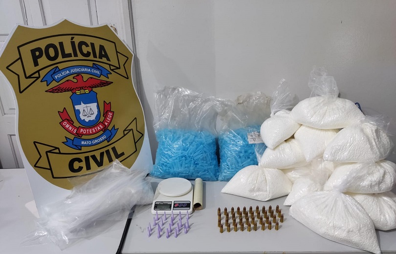 Foram encontrados um pacote de ácido bórico, porções de cocaína e embalagens para entorpecentes