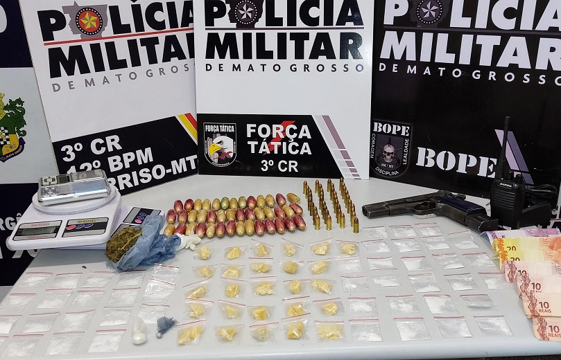 Força Tática prende jovens com 87 porções de cocaína, arma e munições em Sorriso