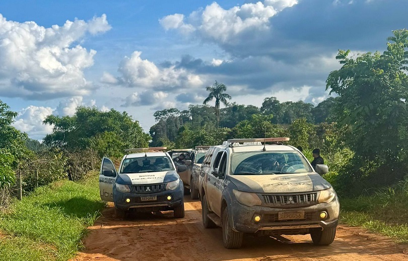 O carregamento ilícito era transportado na carroceria de uma camionete; três veículos foram apreendidos e um suspeito preso em flagrante