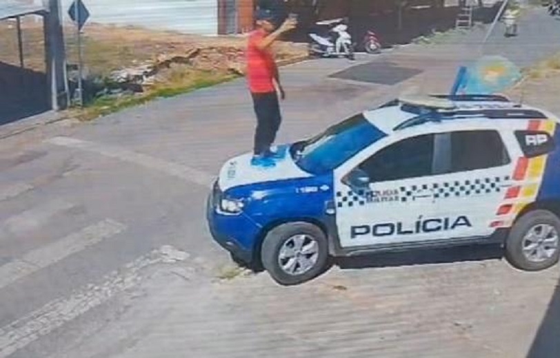 PM prende homem que subiu em viatura para gravar vídeos de apologia ao crime; veja o vídeo