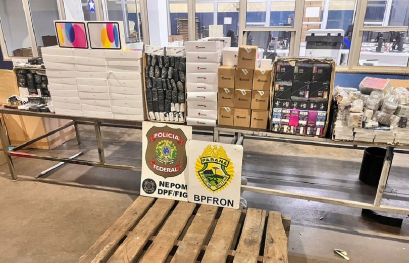 Foram encontrados nove fardos com mercadorias contrabandeadas do Paraguai