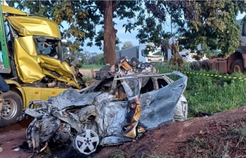 Com o impacto da batida, o veículo onde estava a família pegou fogo. As vítimas seriam um casal e duas crianças