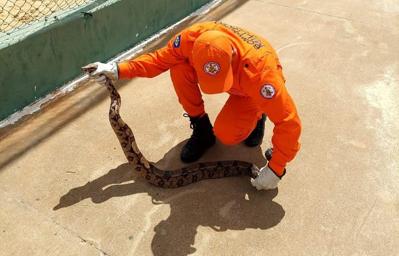 Serpente foi capturada e levada a uma área verde adequada, distante do perímetro urbano, onde foi solta na natureza