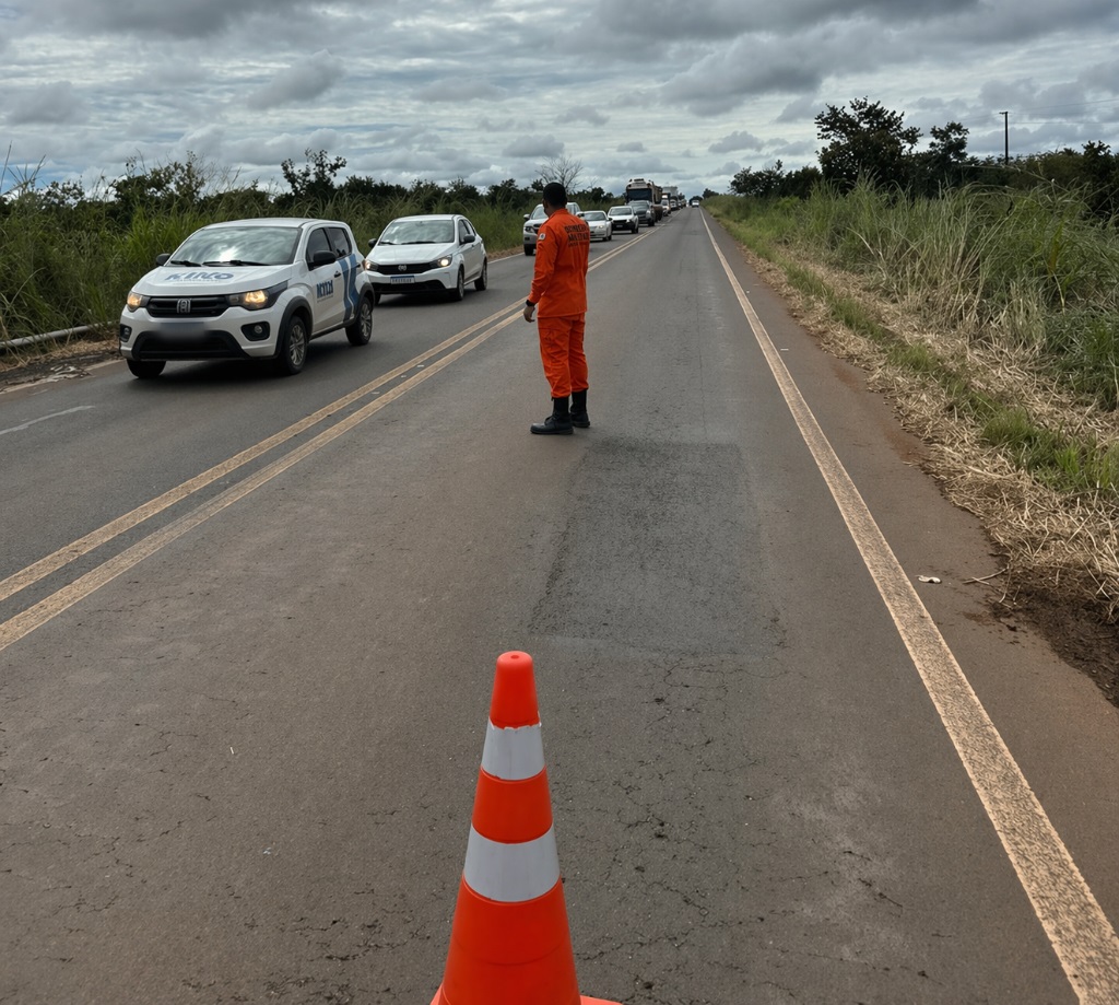 Devido à obstrução parcial da via, a equipe do 3º NBM realizou o isolamento da área e o controle do tráfego em sistema de meia pista, garantindo a segurança no local e prevenindo novos acidentes.