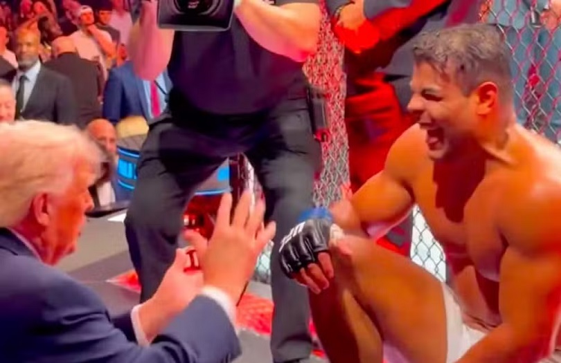 Após vencer uma luta no UFC, no último sábado, dia 11, o brasileiro Paulo Borrachinha se surpreendeu com o elogio que recebeu de Donald Trump: “Você é bonito demais para ser lutador. Você deveria ser um modelo”, brincou o presidente dos Estados Unidos. Nas redes sociais, o atleta, que é um grande apoiador do presidente norte-americano, tem se divertido com os memes que fãs têm feito.