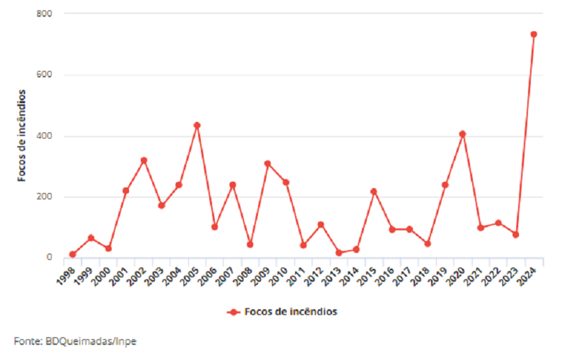 - 2024: 1632 focos de incêndio entre 1º de janeiro e 12 de junho;
