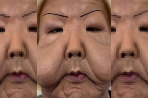 O resultado foi uma deformação na face, causada pela aplicação do óleo mineral. Ela chegou a pedir ajuda financeira aos seguidores para realizar a cirurgia de reparação, mas ganhou o procedimento gratuito.