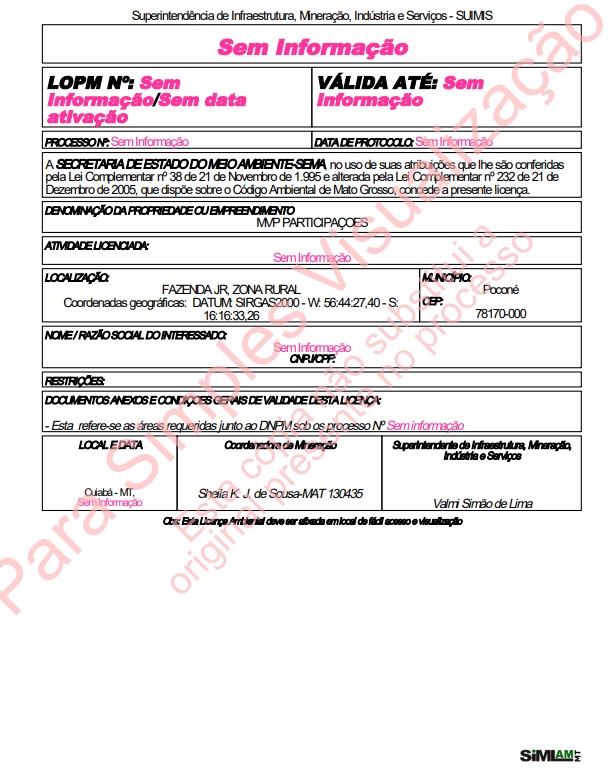 Confira a licença emitida pela Sema à MVP Participações Ltda e o parecer técnico da Sema: